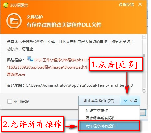 在永久软件安装过程中,360可能会弹出关于文件防护的提示,请按如下操作方式进行选择。